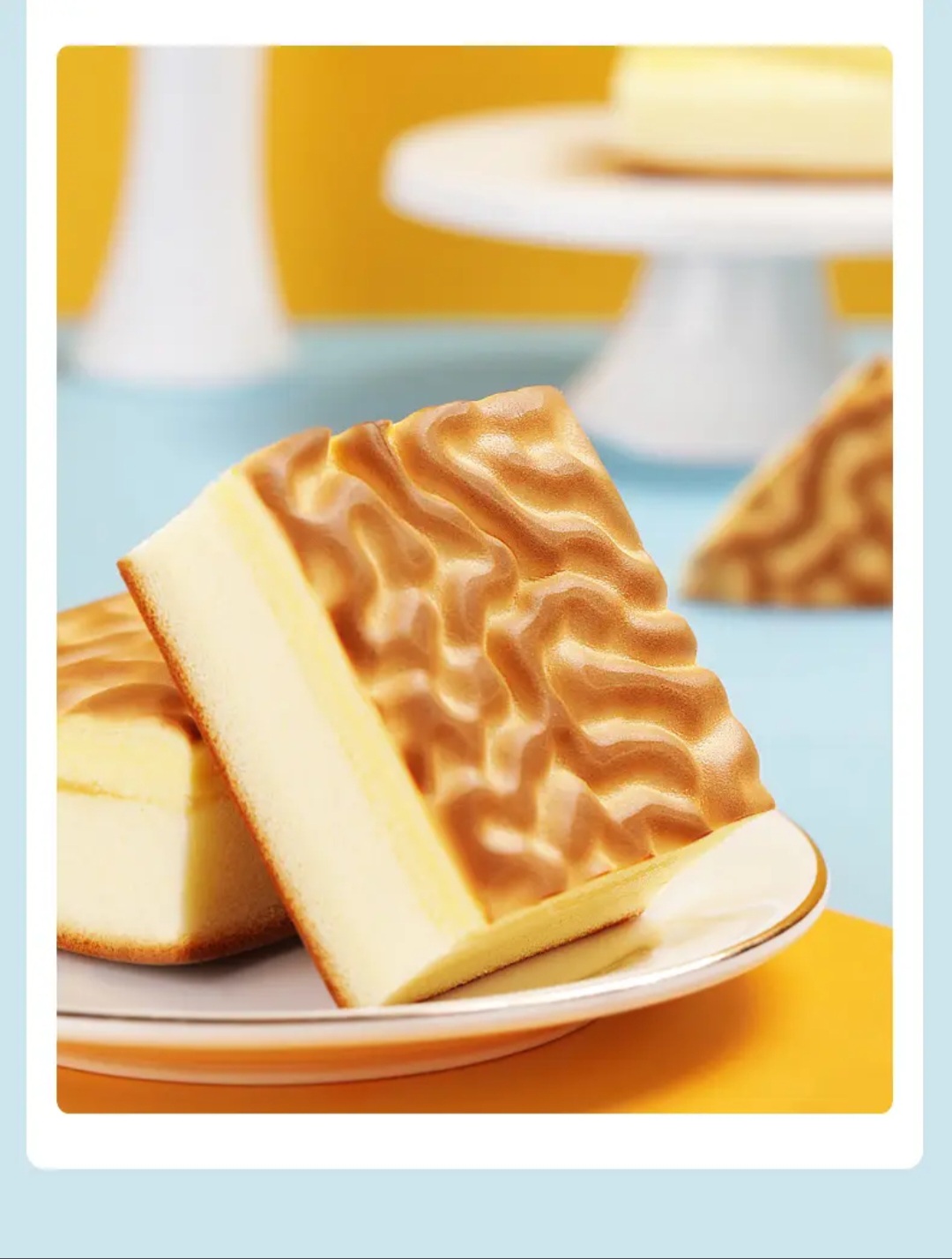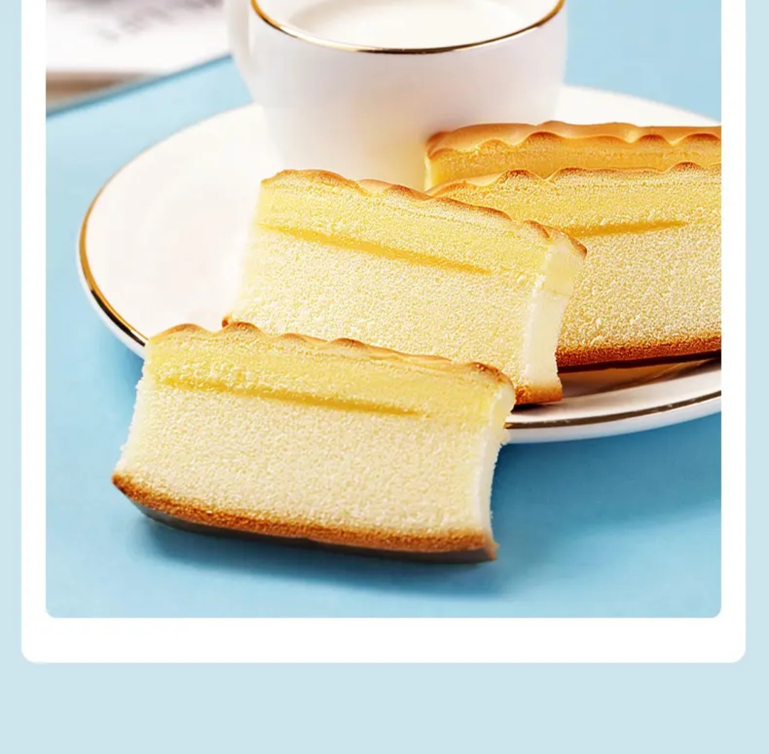 Infused with 7% lactic acid bacteria dressing, this cake offers a light, milky flavor with a refreshing tang, balanced by the rich taste of eggs and milk powder.