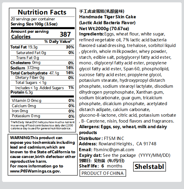 产品名称 / Product Name | 手工虎皮蛋糕(乳酸菌味) Handmade Tiger Skin Cake (Lactic Acid Bacteria Flavor) |