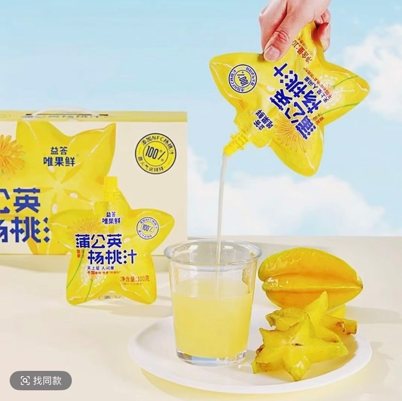 蒲公英被广泛认为具有清热解腻、调理代谢的功效,与热带果香杨桃融合,兼具口感与养生。