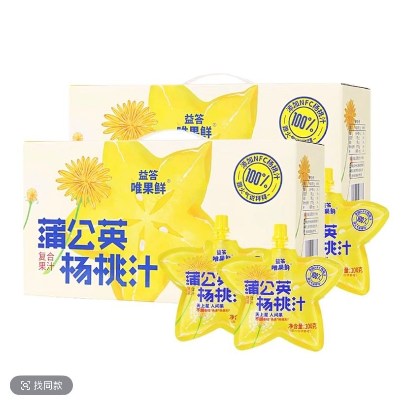 这款【蒲公英杨桃复合果汁】选用杨桃原浆添加量 >200g/L,搭配水蜜桃浓缩汁、苹果浓缩汁与蒲公英浓缩液,果香清甜、草本清润,入口酸甜适中,层次感十足。